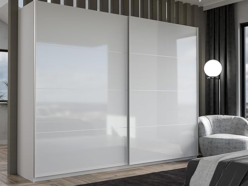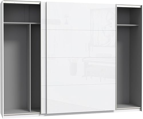 Forte Starlet Plus Armoire 270, Portes Coulissantes, Style Moderne, Blanc/Blanc Brillant, 270x210x61cm
