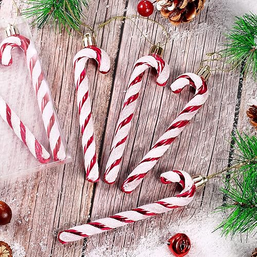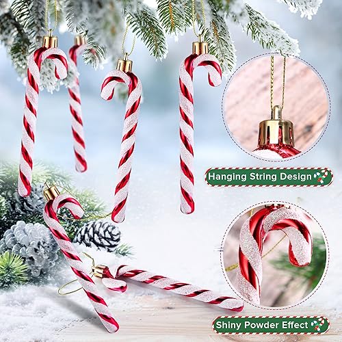 MELLIEX 6 Pièces Canne à Sucre d'Arbre de Noël avec Paillettes - Ornements de Bonbons Torsadés Métalliques pour La Fête de Noël avec Cordes - Or