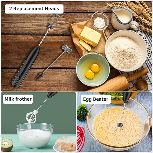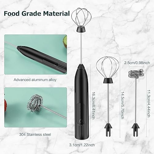 Mousseur à lait électrique USB Rechargeable, 3 Vitesses Petit Mixeur avec 2 têtes Mini Fouet Matcha, Café et Lait, Portable Batteur Electrique Cuisine, Acier Inoxydable Milk Frother Mélangeur Biberon