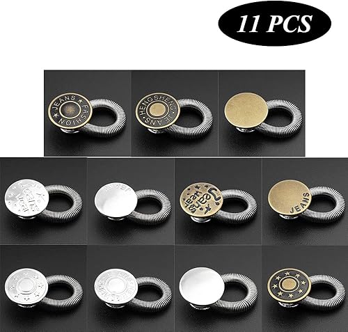 Pamtns Rallonge Pantalon 11 Pièces Elargisseur Pantalon Boutons D’extension Extension de Bouton Pantalon Élastique Rallonge Bouton Élastique avec Ressort pour Jean Pantalons Chemises