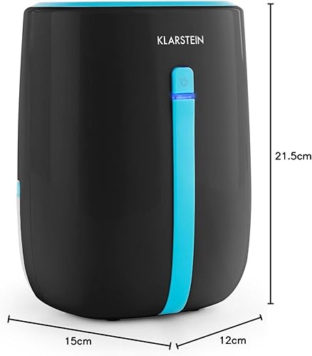 Klarstein Shetland 600 - déshumidificateur, purificateur d'air, déshumidificateur électrique, 0,22 L/24 h, compresseur économique 22W, réservoir d'eau 0,5l, ca. 15 x 21,5 x 12 cm (LxHxP), Noir