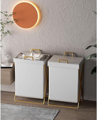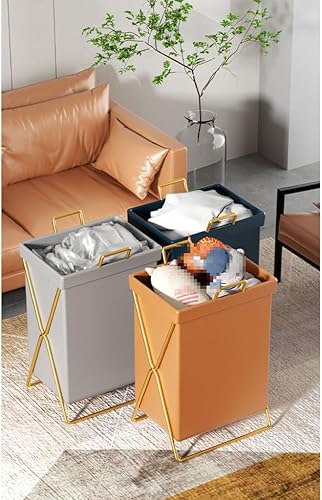 Corbeille Panier à linge pliable X-Frame avec trieur de sacs en cuir, cadre en métal noir/or, panier à linge de luxe pliable pour vêtements sales avec couvercle Buanderie