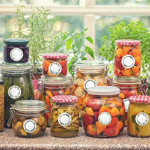 Giloty Etiquettes Autocollantes, 200PCS 5CM Étiquettes à Confiture, 4 Étiquettes Confitures Fait Maison à Motifs Différents, Étiquettes Autocollante pour Bocaux, D'épices, Cuisson, Cadeau