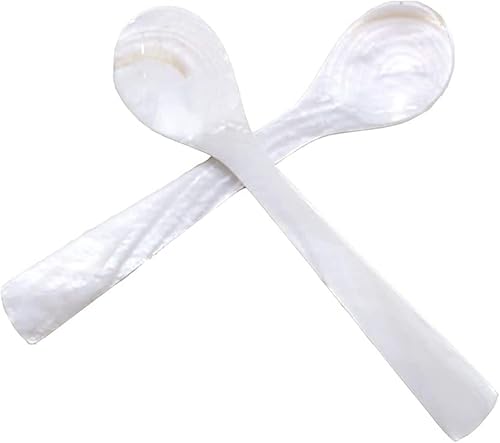 Gewene Lot de 2 cuillères à caviar faites à la main - Écrou de perle MOP - Cuillère à caviar - Poignée ronde - Pour servir des œufs de caviar - 3,55 pouces - Blanc