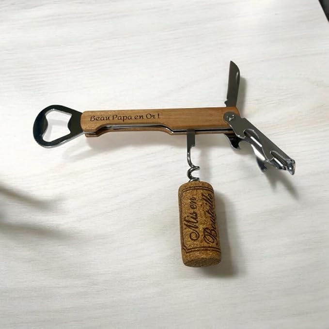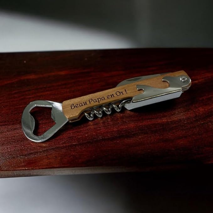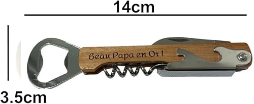 Ouvre bouteille, limonadier, tire bouchon 'Beau Papa en Or' idée cadeau homme, Papa, Beau Père, anniversaire, fête, Noël, bière,vin