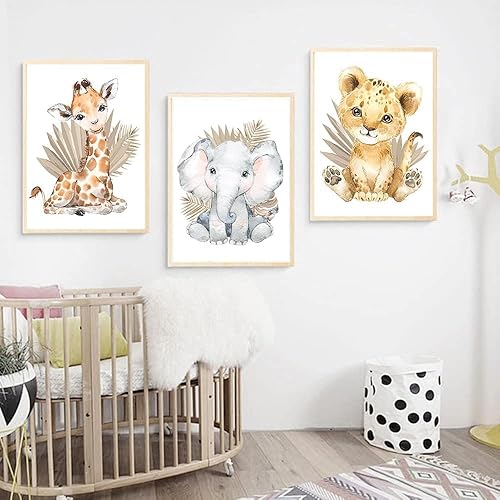 3 Affiche Animaux de la Foret Chambre Bebe 30x40cm Poster Savane Enfant Affiches Lion Elephant Girafe Tableau Animaux Jungle Enfant Toile Décoration Murale Chambre Bébé Fille Garcon Cadeau sans Cadre