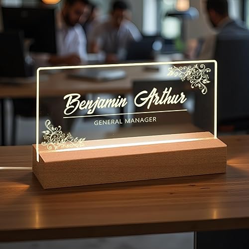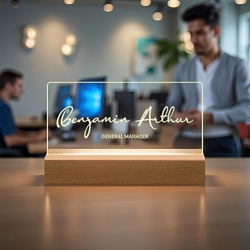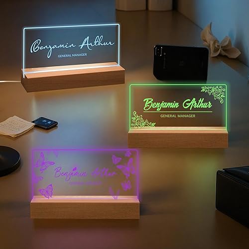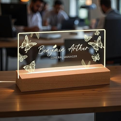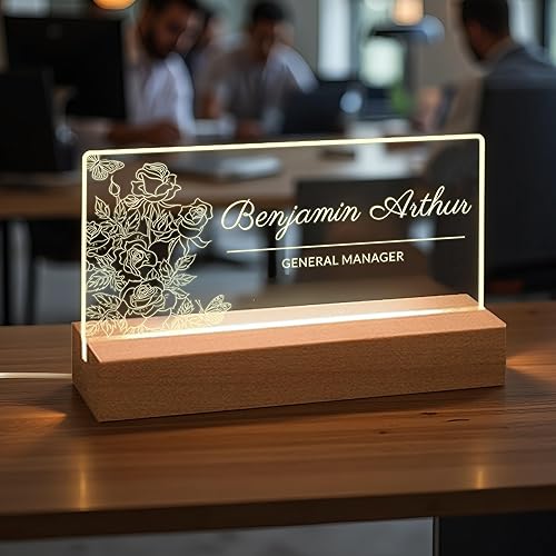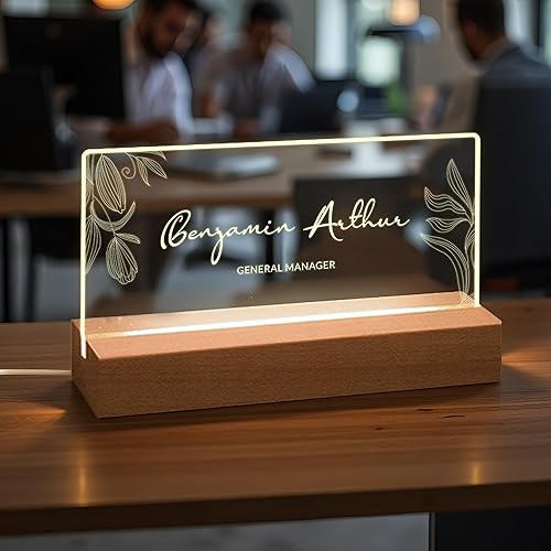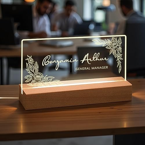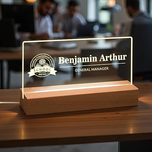 Plaque d'identification de bureau illuminée en acrylique personnalisée, Plaque de bureau personnalisée, Cadeaux pour les collègues de travail, Boss, Professeur, Décoration du bureau (Style 2)