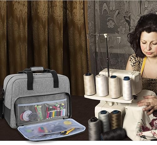 Yarwo Sac pour Surjeteuses, Sac de Transport pour Surjeteuses, Convient à la Plupart Majeur Surjeteuses, avec Fond antidérapant et rembourré épais Interne, Gris