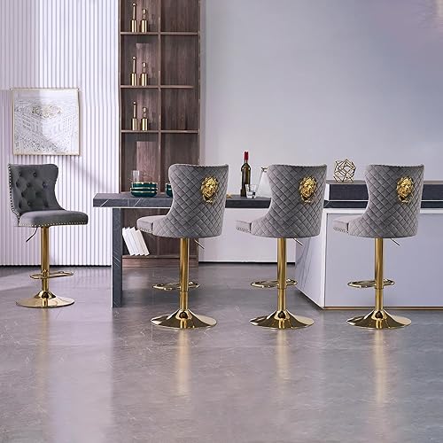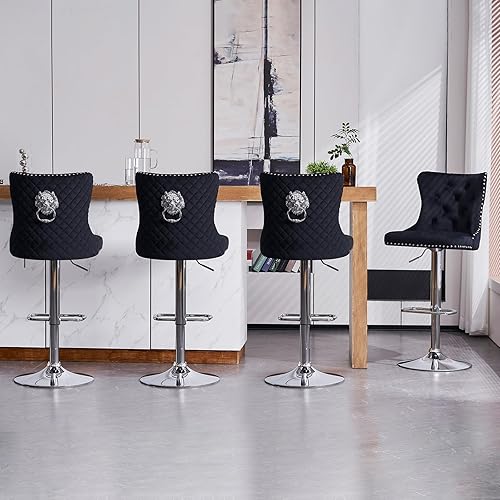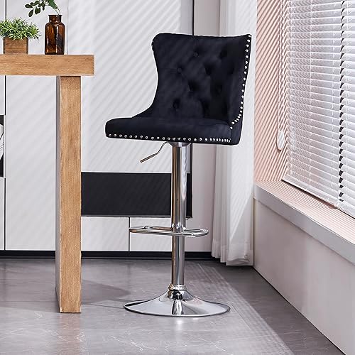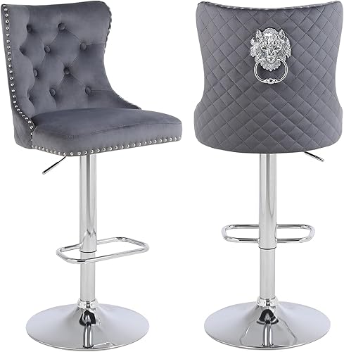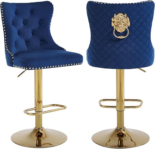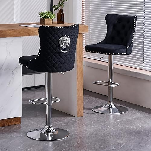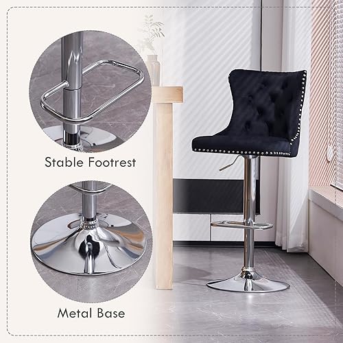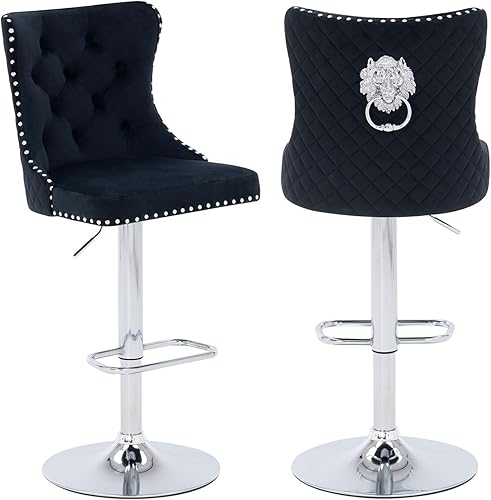 KHISCHMO Lot de 2 Tabourets de Bar Pivotant,Chaises de Cuisine en Velours,Tabourets de Bar à Dossier Haut,avec Garniture en Tête de Clou, Adapté à la Cuisine,Bar,Restaurant,Blanc