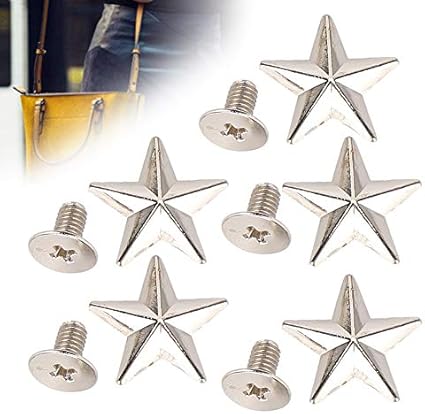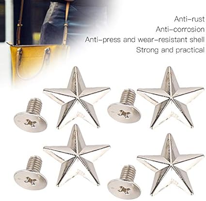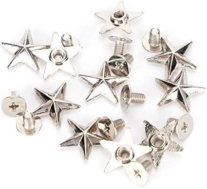 Pssopp 30 Ensembles vis en Alliage de Zinc étoile Rivets 14mm étoiles Goujons et Pointes métal Cuir-Artisanat Bricolage pour Chaussures Sacs vêtements décoration(Argent)