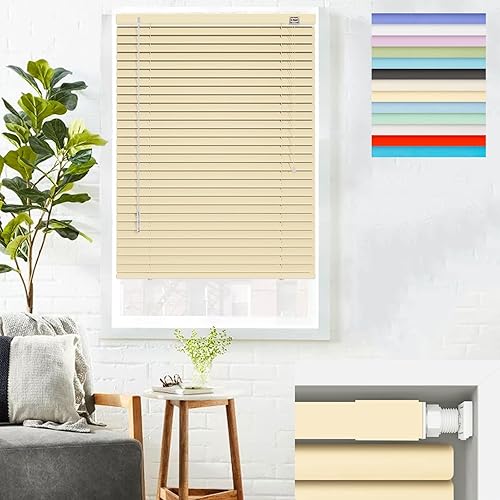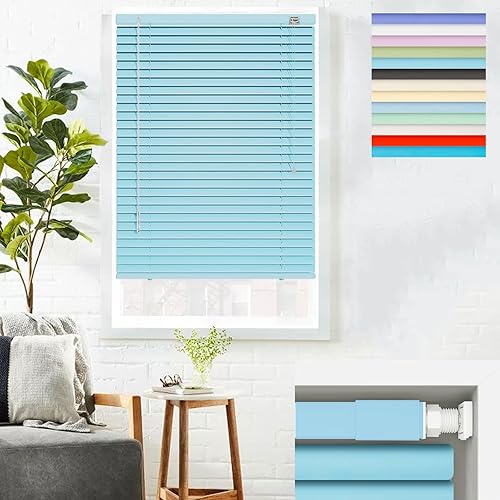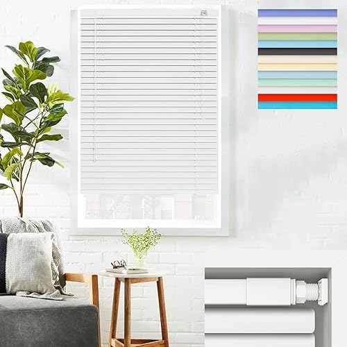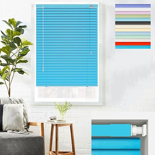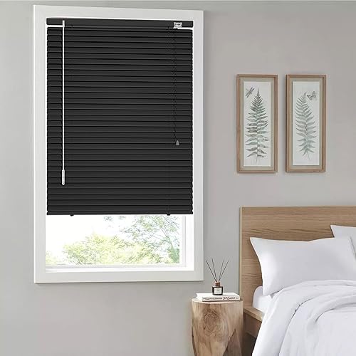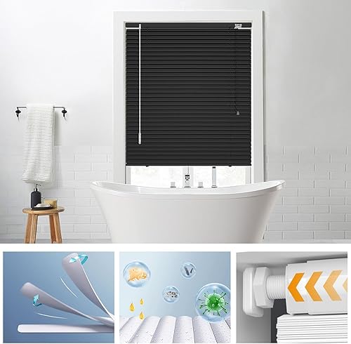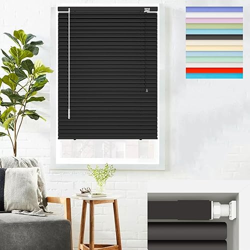 sans PerçAge Store VéNitien en Aluminium Lamelles MéTal 25 mm Stores Occultants pour Fenêtres & Portes Rideaux Horizontaux sur Mesure D'Intimité pour Intérieur Fenêtres Cuisine(Étanche)(Black)