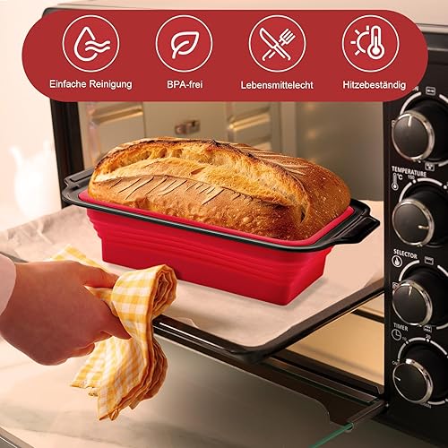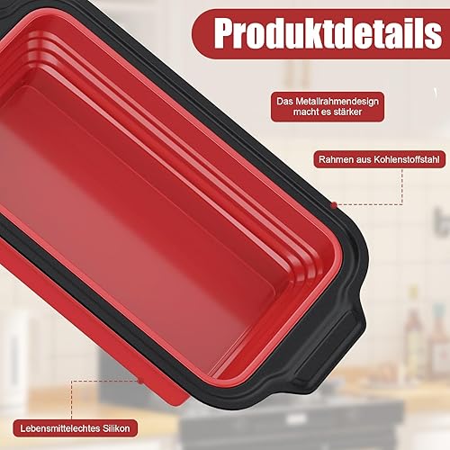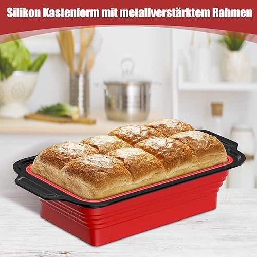 QITIXI:OU Moule à cake en silicone 26 cm avec cadre renforcé en métal, rectangulaire, en silicone, pliable, idéal pour la cuisson du pain, sans BPA