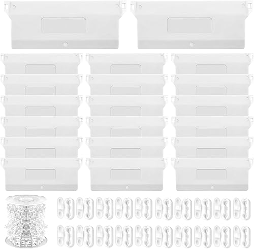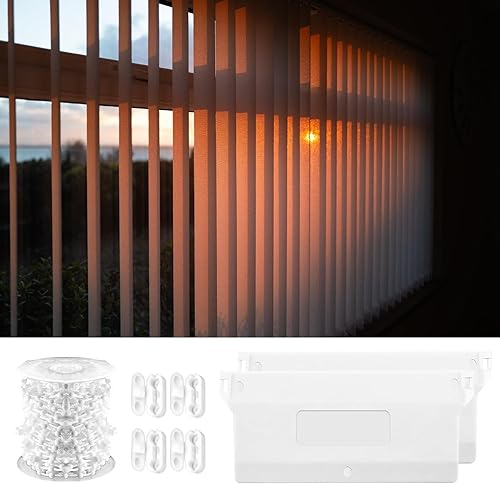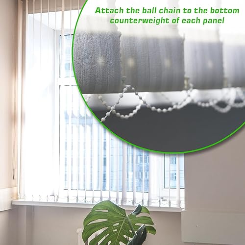 Lot de 20 lamelles de rideau à lamelles avec chaîne de 10 m et 20 boutons de perles - Pièce de rechange de 127 mm - Panneaux de lestage - Pièce de rechange pour rideau, porte, fenêtre - Blanc