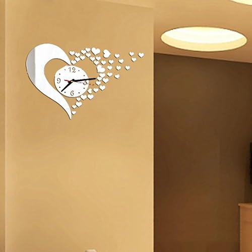 Horloge murale à quartz élégante avec effet 3D pour décoration de bureau et de maison (argent)