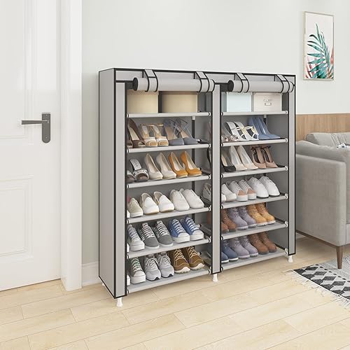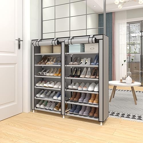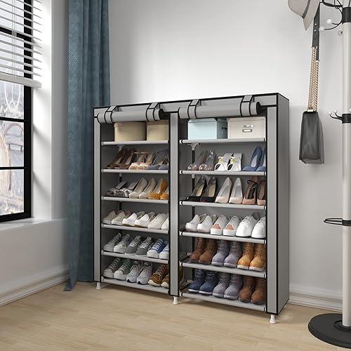 UDEAR 12 étagère, Meubles à Chaussures avec Housse en Toile 7 Couches étagère Chaussures avec Zip Gris