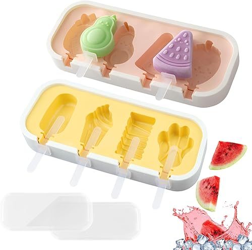 DBALL Moule A Glace 2 Pieces Moule Glace Sans Bisphenol A Moule Glace Silicone Batonnet Avec Stick Et Couvercle Pour Popsicles Glaces Sorbets 23.5 x 9.6 x 3CM