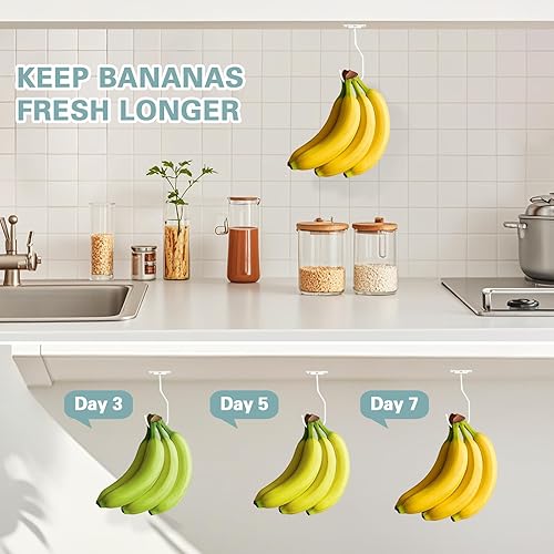 Ticway Crochet banane – Support de banane peu encombrant pour garder les bananes fraîches, crochet banane autocollant et vissable, 1 pack blanc