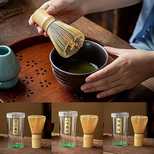 Miaoyak Fouet de cérémonie du thé chinois avec boîte, ensemble de fouet à matcha en bambou, accessoires en bambou pour la préparation de la poudre de thé