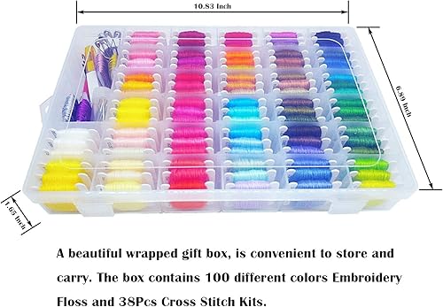 Peirich Fil à broder - 110 couleurs - Fil à broder - Avec organisateur de rangement - Fil à broder - Bracelet - Kit de broderie - 43 outils de point de croix