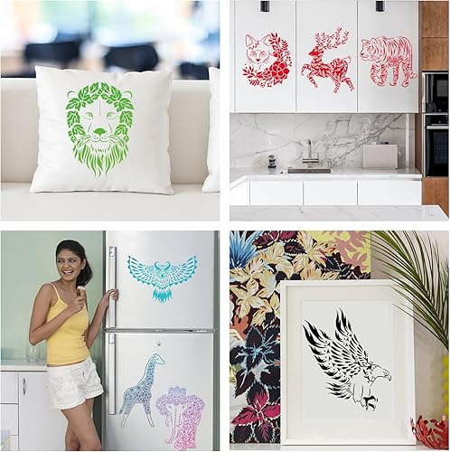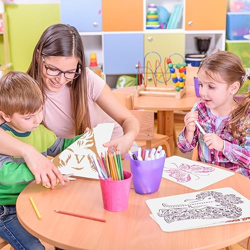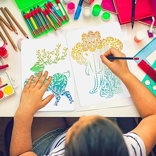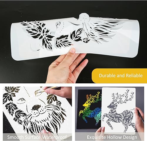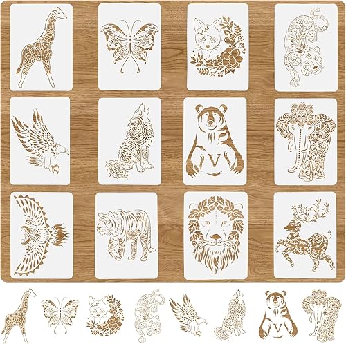 HDHGXUJRD Lot de 12 pochoirs réutilisables en plastique PET pour peinture, bricolage, bois, décoration murale, idéal pour les enfants, cadeaux
