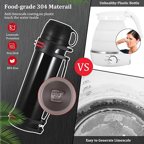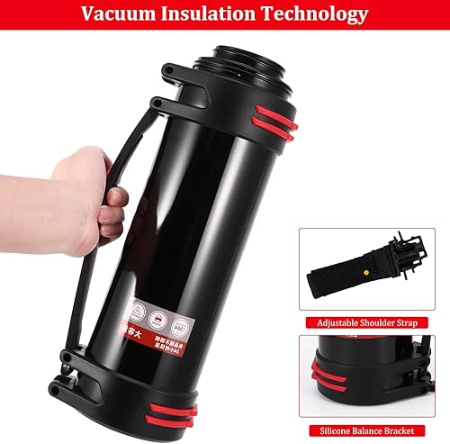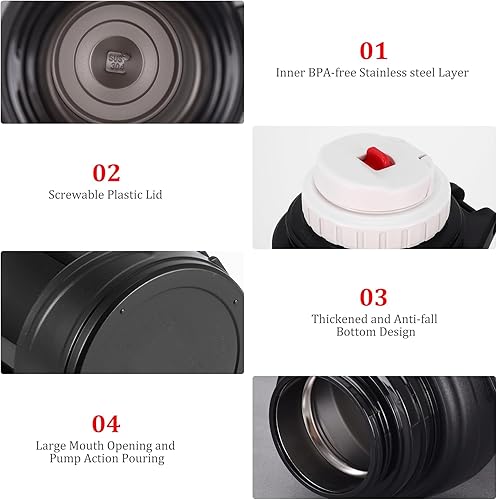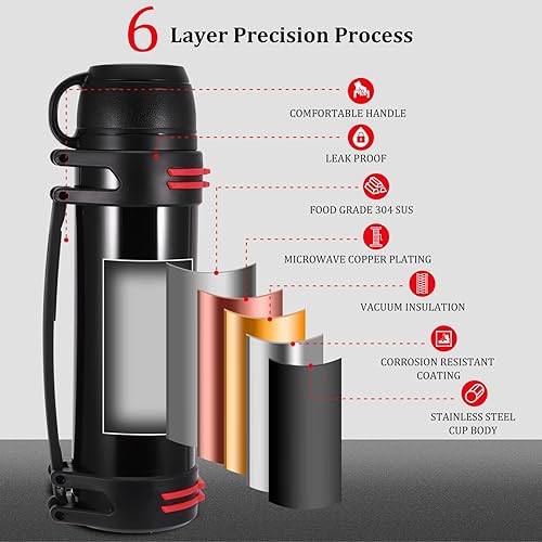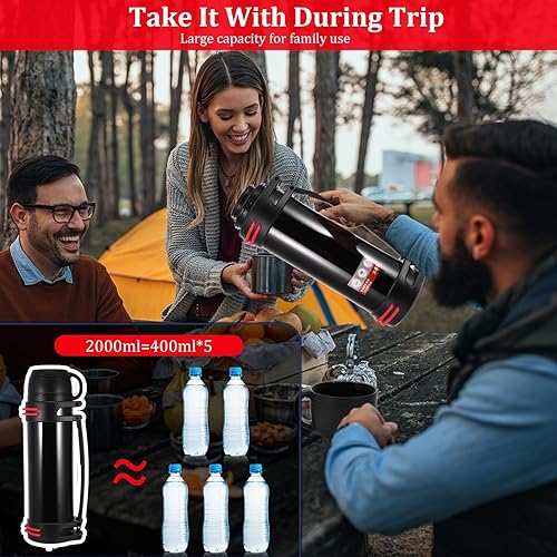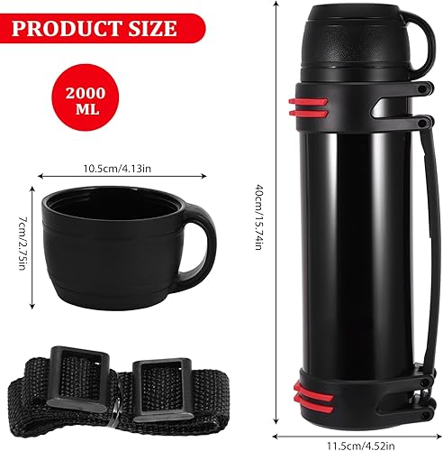 Hangrow Bouteille isotherme en acier inoxydable de grande capacité pour boissons chaudes et froides, gourde de voyage, nourriture, soupe (noir, 2 000 ml)