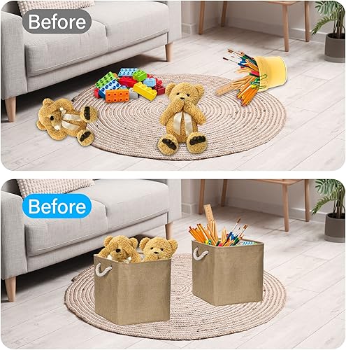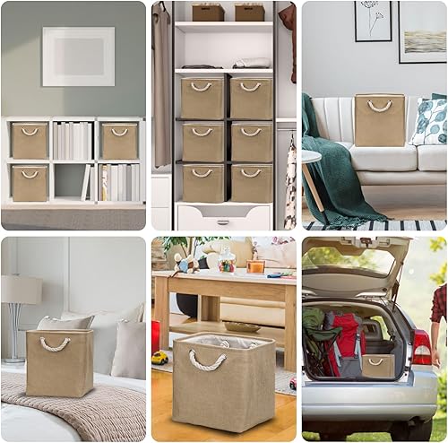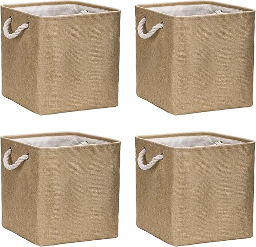 Lot de 4 boîtes de rangement pliables en tissu 30 x 30 x 30 cm - Grand, pour boîtes, étagères, paniers pour kallax pour vêtements, jouets, outils, armoire (kaki)