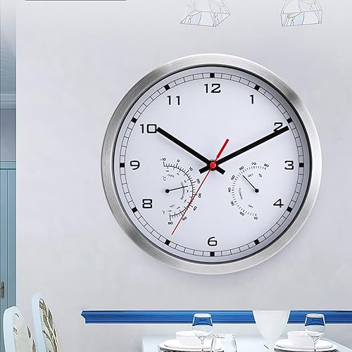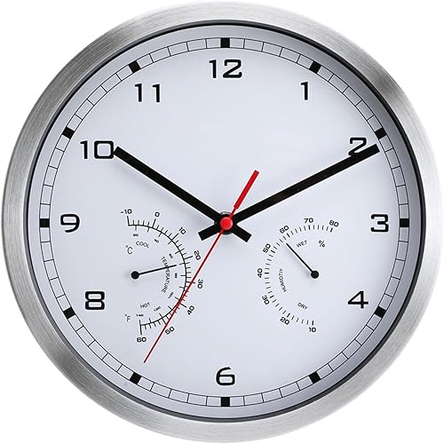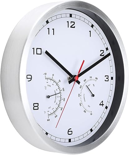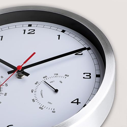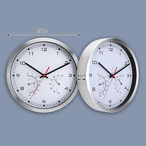 Horloge murale en aluminium, horloge extérieure et thermomètre, avec affichage de la température et de l'humidité, 25,4 cm, décoration d'intérieur moderne pour le salon