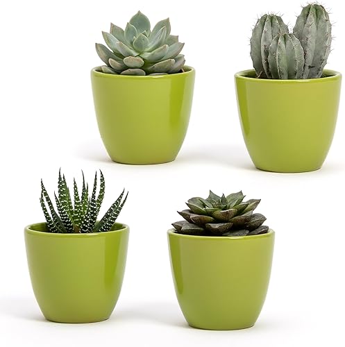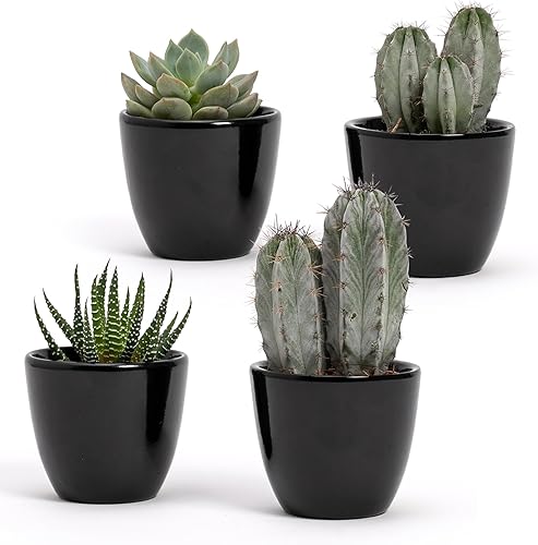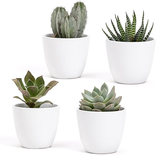Lot de 4 pots d'intérieur en terre cuite blanche brillante | dimensions 7 x 6 cm | parfaits pour plantes succulentes, bonsaï, fleurs, pots décoratifs d'intérieur modernes pour maison, bureau, table