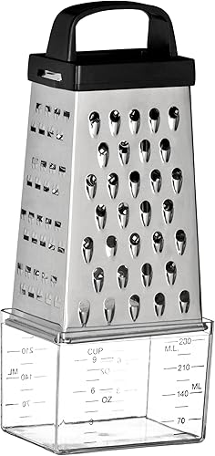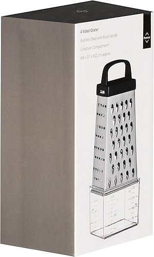 Premier Housewares Râpe de 4 Côtés / Râpeuse legumes,/ Poignée + Récipient de Collecte Acier Inoxydable/Plastique Noir/14.5cm