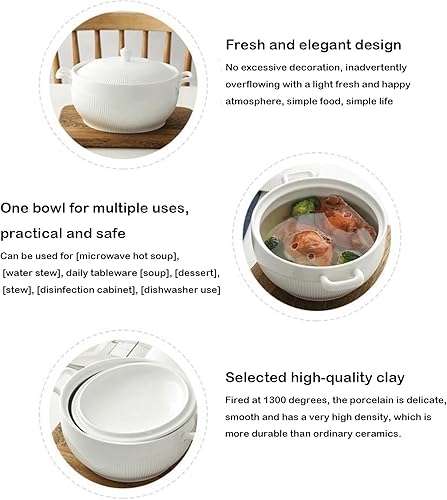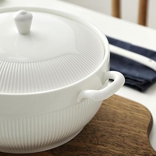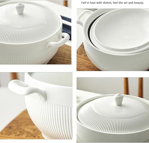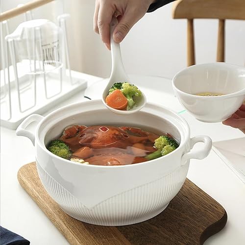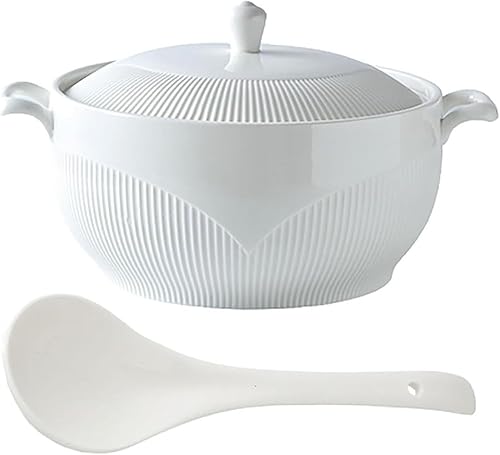 Vnook Soupière en céramique blanche avec doubles poignées, soupières à soupe en porcelaine avec couvercle et cuillères for la cuisine de restaurant à domicile