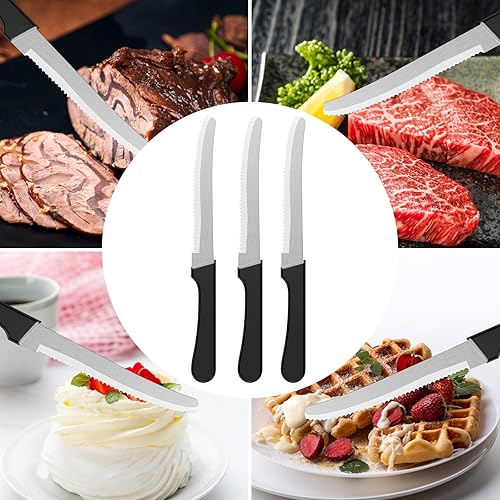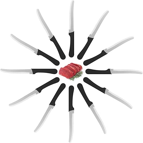 Maxentico 12 set couteau cuisine, couteaux de cuisine en Acier Inoxydable, couteau de table tranchant denté, couteau office, couteaux cuisine de table, couteau a steak, Lame de 12.5 Cm, Noir