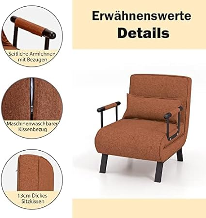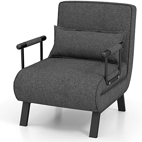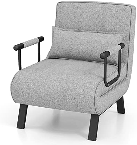 FANTASK Fauteuil Pliant 4 en 1 avec Fonction lit, Fauteuil Convertible, avec Dossier réglable et Coussin Amovible, Gris Clair