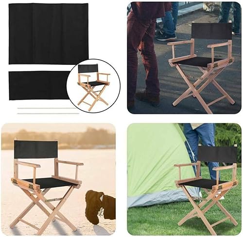 WIIYENA Lot de 2 housses de siège de rechange pour chaise de directeur, siège et dossier avec deux baguettes en bois, housses de rechange en toile lavables (noir)