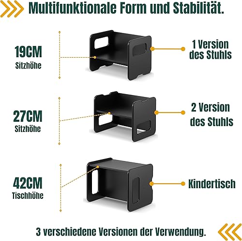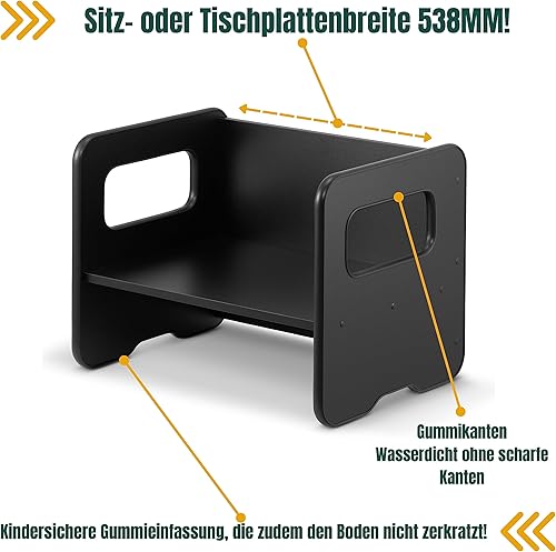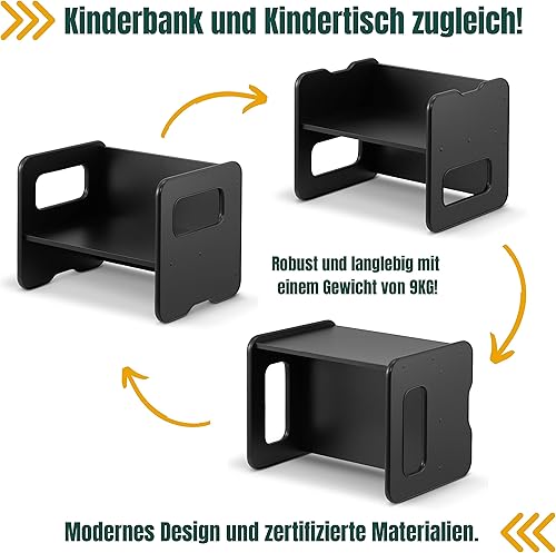 defiPad Banc pour enfants - Banc pour enfant en tournant comme table pour enfant - Banc en bois avec 2 hauteurs d'assise - Fonction table pour enfants - Élément de groupe de sièges pour enfants