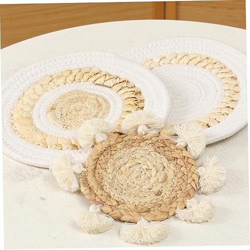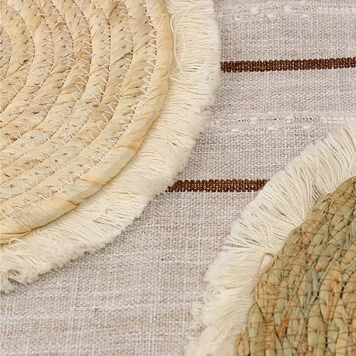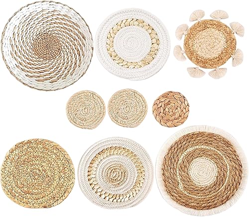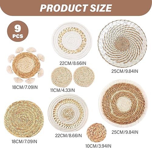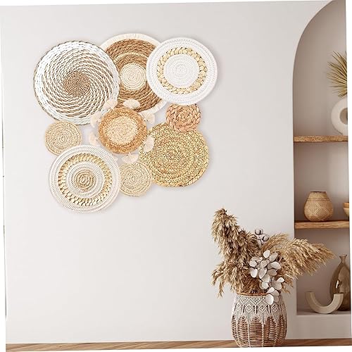 Ssguopte 9pcs décor Mural Boho, décoration Murale de Cuisine tissée Suspendue, Rustique Rustique Rond Plat d'herbe à rotin Art Mural en Osier pour la Maison de Chambre à Coucher