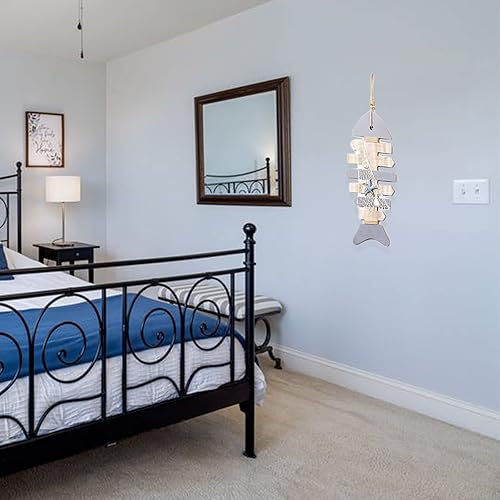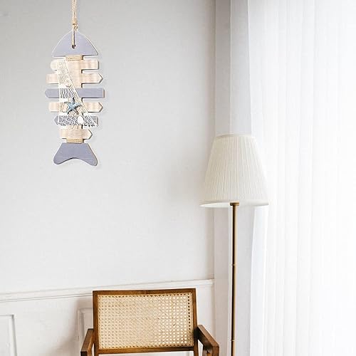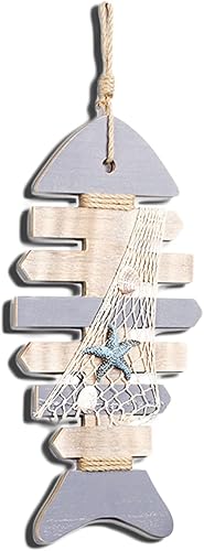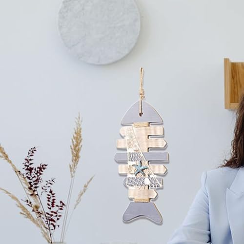 Hoshisea Décor en Bois Os Poisson, Squelette Poisson Nautique, avec Coquilles Saint-Jacques et étoile de mer Décoration Murale Tentures Porte Décor à la Maison Thème la Plage(40.5x19x2
