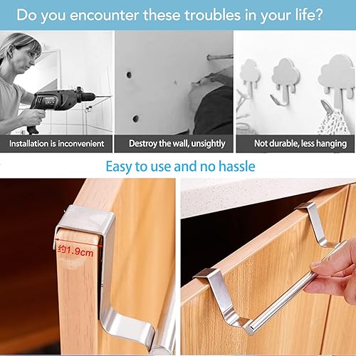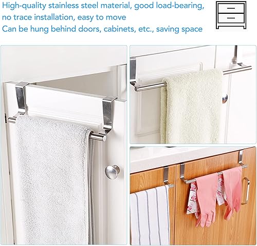 CHENEVER Porte Serviettes sur Porte en Acier Inoxydable, Accroche-Torchon pour Porte Placard Tirroir Armoires Accessoire de Cuisine et Salle de Bain - Argenté