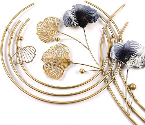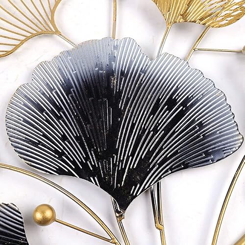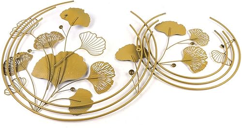SHZICMY - Décoration murale 3D - Feuilles de ginkgo - En métal - Doré - Moderne - 110 x 70 x 2,5 cm - Pour salon, mur, maison, salle à manger, bar, bureau, hôtel et extérieur