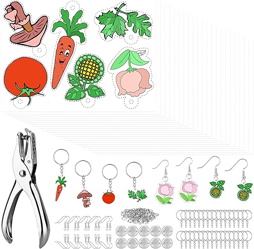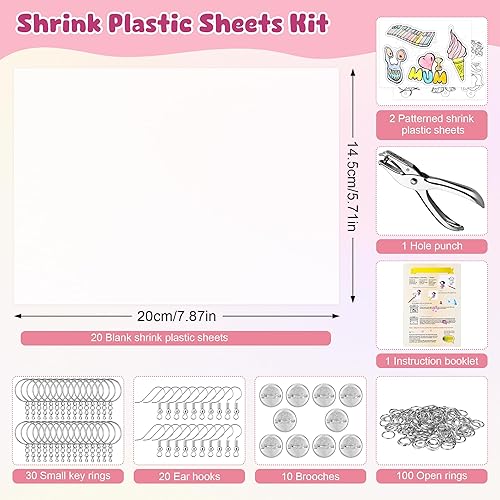 Starvortex 183 Pcs Plastique Fou Kit, DIY Plastic Fou pour Activité Manuelle Enfant, Incluent Papier Fou Vierge et à Motifs (20x14.5cm), Perforateur, Porte Clé Accessoires, Kit Créatif Enfant Magique