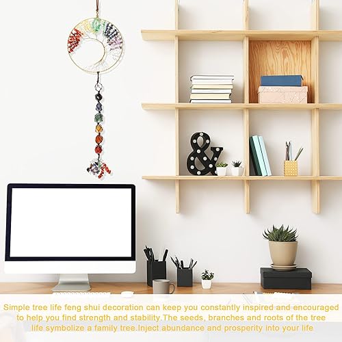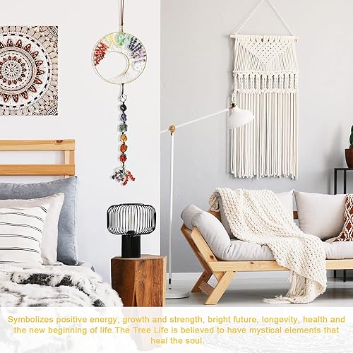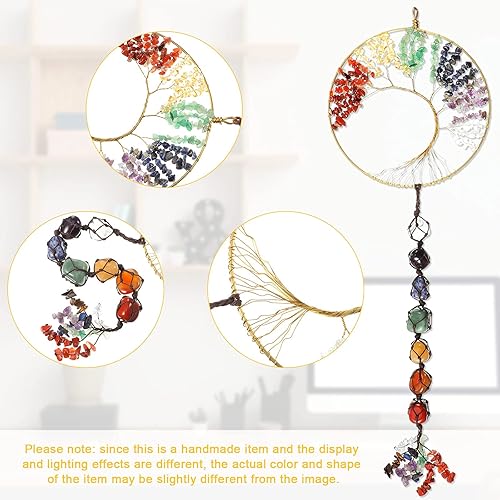7 Pierres de Chakras Guérison de la Vie dans l'arbre des Cristaux Ornement Suspendu Dégringolé Feng Shui Ornement de Fenêtre Décor de Fête à la Maison de Souvenir de Mariage