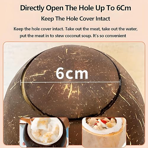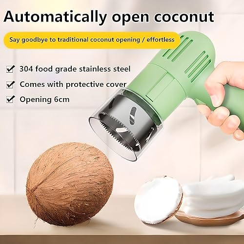 Ouvre-Noix de Coco Électrique, Outil Portable en Acier Inoxydable avec Grattoir, Diamètre D'ouverture 6 Cm, Facile Ouvrir, pour Magasin Et Restaurant