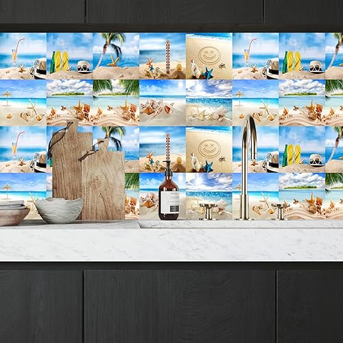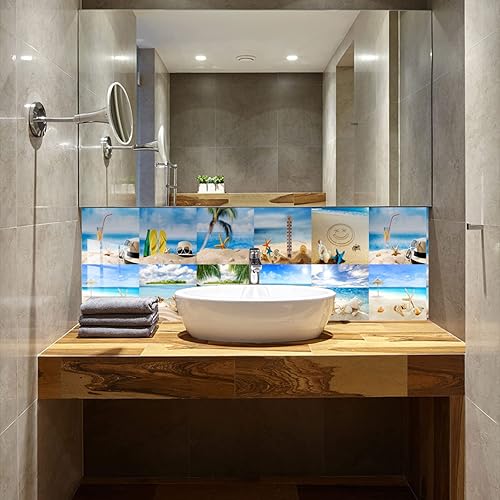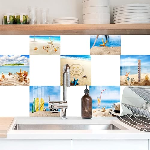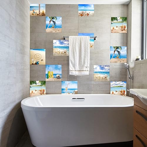 Stickers Carrelage 15X15 La Plage Et La Mer Adhesive Murale,Stickers Carrelage Auto-Adhésif En Pvc Autocollant En Tuile,Imperméable Effet Carreaux Pour Salle De Bain Cuisine(10Pcs)