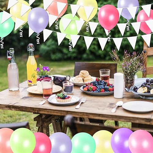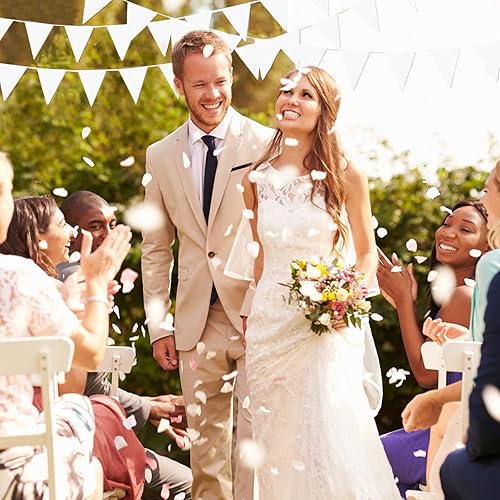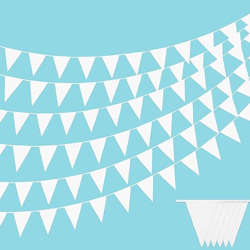 Guirlande Fanions, Drapeaux 12 M50, Guirlandes De Fanions en Toile De Jute, Tissu Extérieur Résistant Aux Intempéries, Fanions Réutilisable, pour Chambre d'enfant, Fête, Extérieur, Etc. (Blanc)