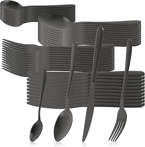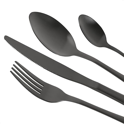 COM-FOUR® Ensemble de couverts 48 pièces pour 12 personnes - couverts en acier inoxydable - couverts de table foncés - couverts de menu mats - couverts de service (Set10-48 pièces)
