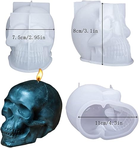 Moule à Bougie Tête De Crâne 3D, Fabrication De Bougie Moule Halloween, Moule à Bougie en Silicone, Moule de Coulée époxy pour DIY, Décoration de la Maison, Moule à Savon, Décoration de Fête Halloween