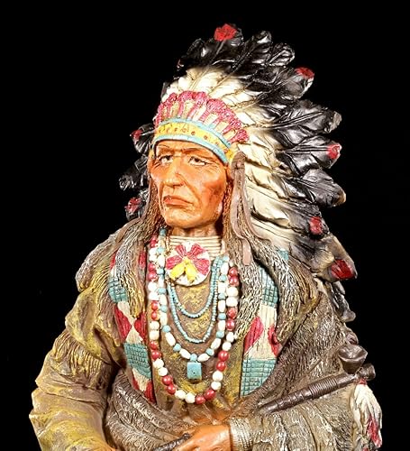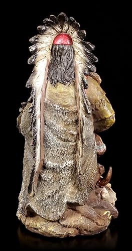 Indien Figurine - Chef Assis avec Calumet de la Paix Figurine Décorative, Peint à la Main