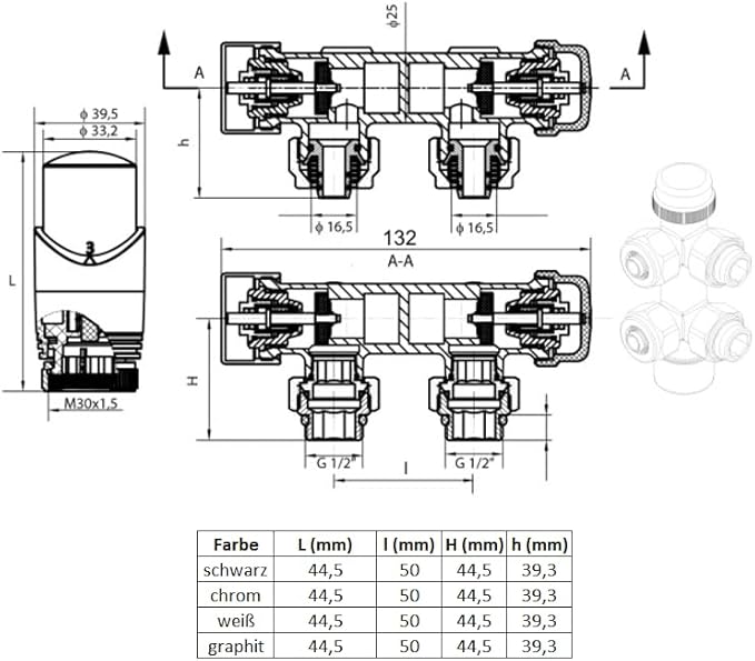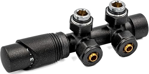 Kit multibloc pour radiateur - Robinet de raccordement avec thermostat - Noir