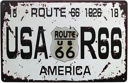 Plaque en métal vintage pour maison, salle de bain et bar, décoration murale souvenir (Route 66 1926 USA R66 américain)