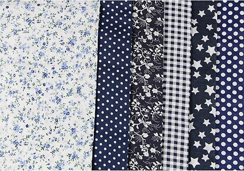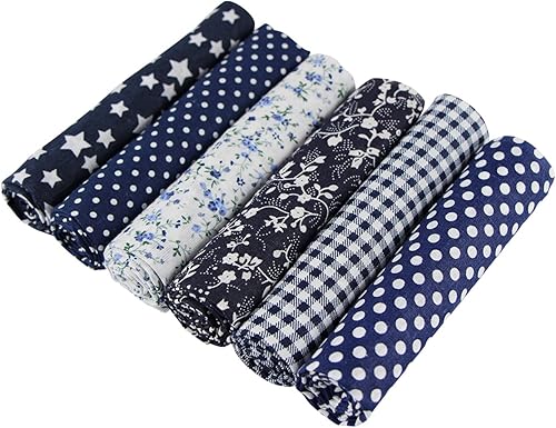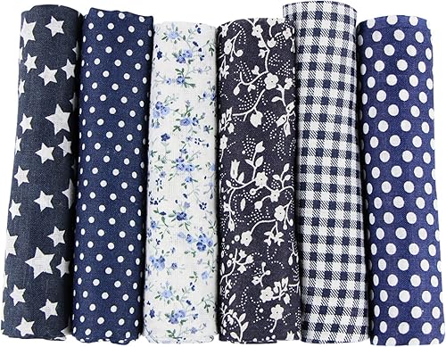 UOOOM Lot de 6pcs 50 x 50 cm Patchwork Coton Tissu DIY Fait à la Main en Tissu à Coudre Quilting Designs Différents (Tone-Navyblue)