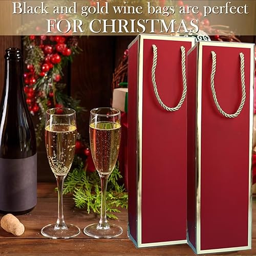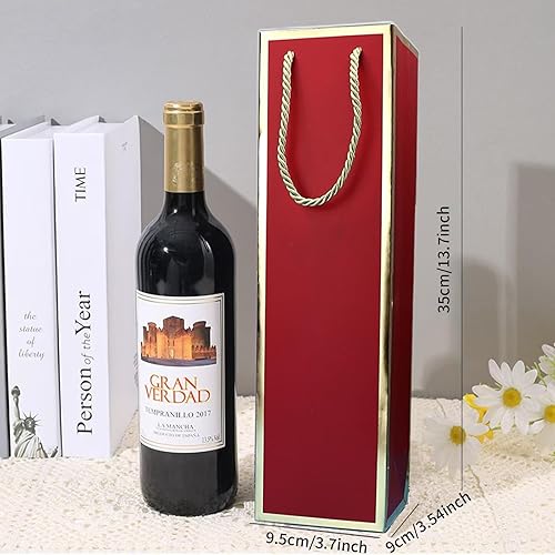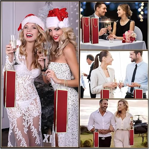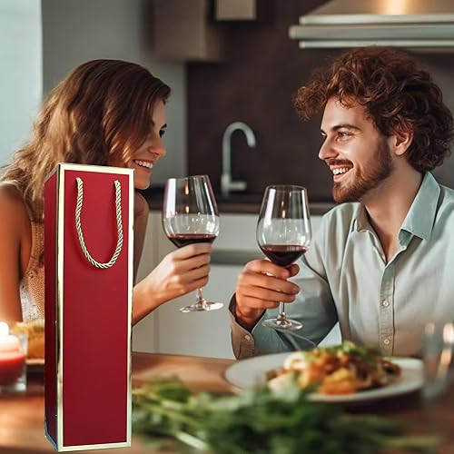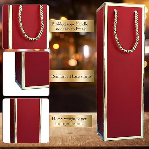 Lot de 12 sacs pour bouteilles de vin en papier kraft avec poignée - Organisateur de vin en kraft pour mariage, fête - Rouge